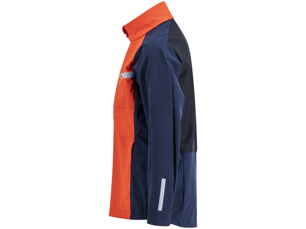 Lehká funkční dětská bunda na běh a kolečkové lyže. Je vyrobena z lehké, větru odolné a vysoce prodyšné strečové tkaniny, která vás neomezí ani při nejintenzivnějším pohybu. V horní části zad je použit elastický síťovaný materiál pro lepší prodyšnost a funkčnost. Bunda je navržena s pečlivě umístěnými švy, které nikde neomezují a nedřou. Tato bunda na běhání má dvě klasické kapsy na ruce a jednu velkou náprsní kapsu na zip. Manžety rukávů jsou ze spodní strany z příjemné strečové lycry. Na hrudníku je skrytá přezka, kterou je možno sepnout bundu v případě, že chcete běžet s rozepnutým zipem kvůli lepší prodyšnosti. Jasné barvy a reflexními prvky = ideální produkt pro běh nebo jízdu na kolečkových lyžích i po silnici či za horších světelných podmínek.Materiál: Hlavní materiál: 100% polyester.