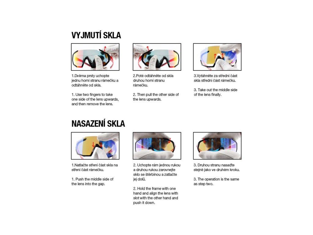 Součástí balení jsou i další dvě náhradní skla, žluté do špatných světelných podmínek a polarizační pro odstranění nepříjemných odlesků.