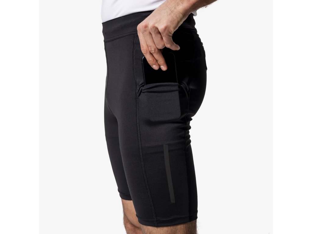 Klasické pánské krátké běžecké elasťáky z funkčního, čtyřsměrně strečového materiálu. Šortky mají širší pas se šňůrkou pro regulaci. Vzadu je malá kapsa na zip a na levém stehně z boku je druhá, poměrně prostorná kapsa například na doplňky výživy na delší běh. Tyto běžecké šortky mají anatomický střih, takže perfektně sedí. Jako správné běžecké kraťasy jsou doplněny o reflexní prvky pro bezpečný běh za horších světelných podmínekMateriál: Hlavní materiál: 82% polyester / 18% spandex.