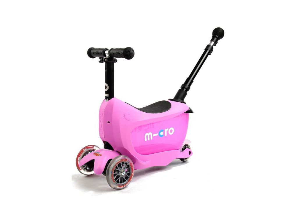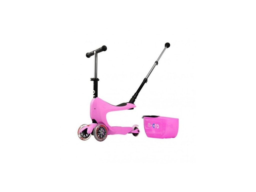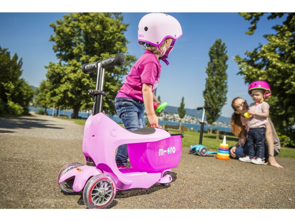 Micro Mini2go Deluxe plus koloběžka pro děti od 1,5 rokuÚžasně rafinovaná koloběžka pro děti. Rafinovanost spočívá v tom, že má úložný prostor, kam schováte všechny důležité věci, které se prostě do kabelky nehodí (např. výbavička na pískoviště, plyšový dětský kamarád ... ). Verze Deluxe Plus má navíc zadní vodící tyč a LED světýlko použitelné k osvětlení boxu nebo na řídítka jako klasické světlo.
