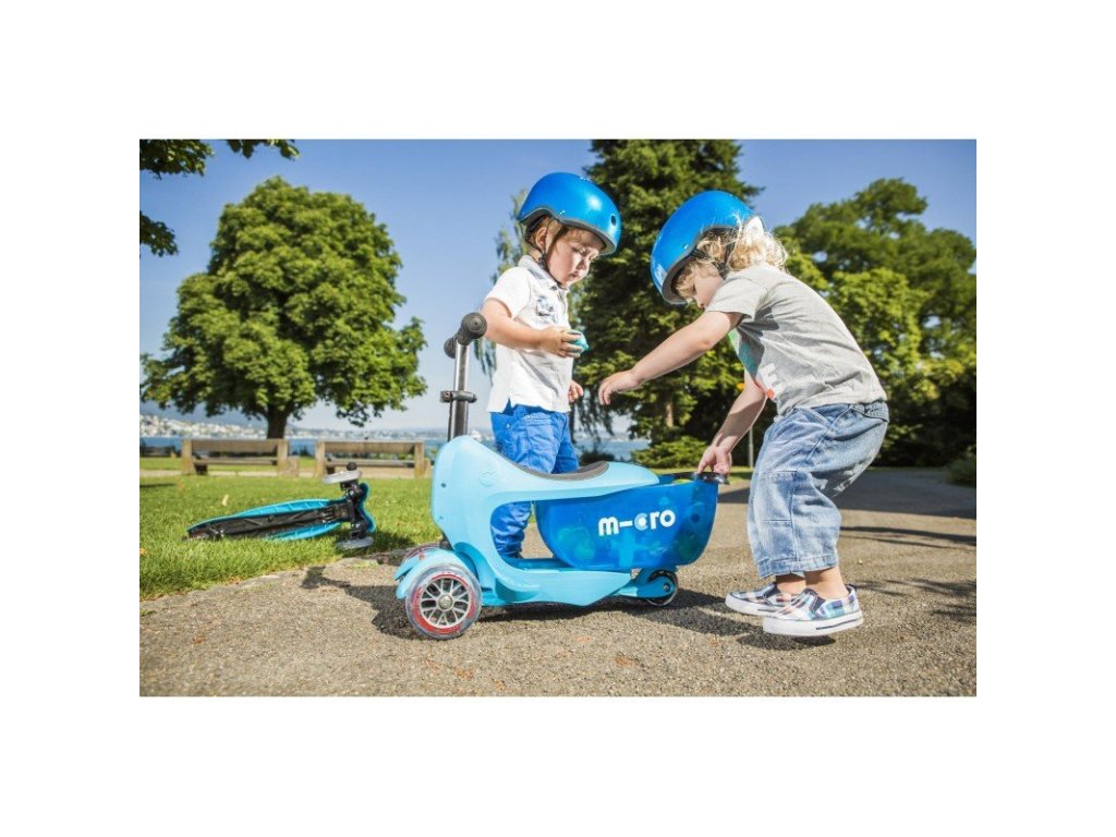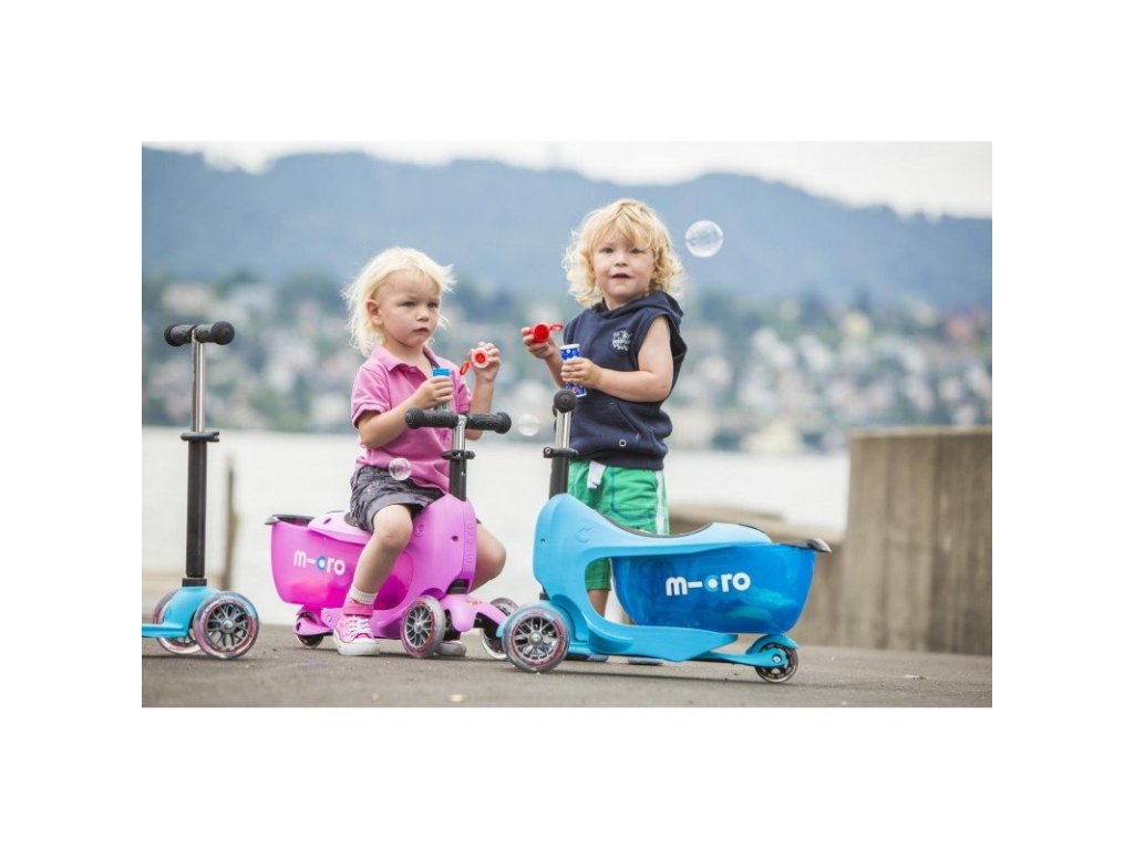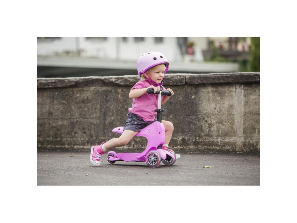Micro Mini2go Deluxe můžete využít od 1,5 roku jako klasické odrážedlo a v pozdějším věku jako trojkolku nebo lépe řečeno koloběžku.